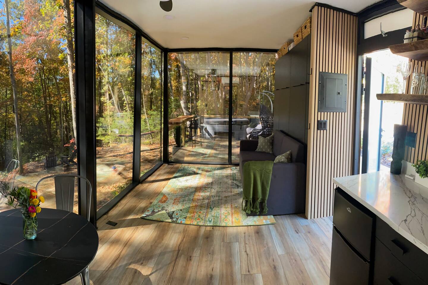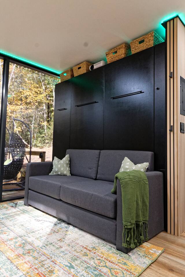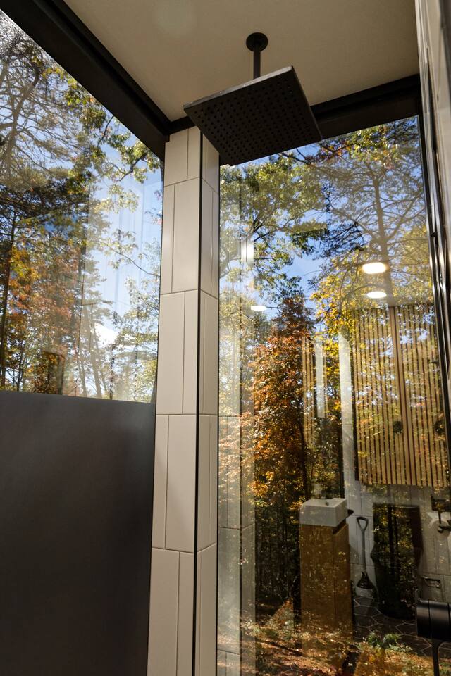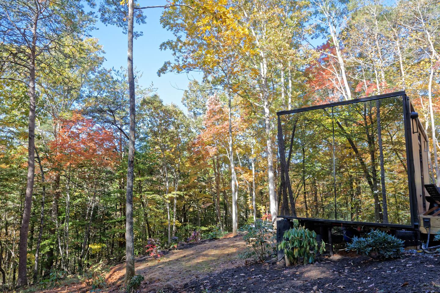 Add this listing to your wishlist now by clicking the ❤️ in the upper right hand corner. The mirror house is organized as a studio space with the living room doubling as a bedroom and uses a creative Murphy wall bed to maximize living space. This makes the space feel far bigger, as do the windows on nearly all sides of you. However the bathroom itself is small, leaving minimal storage space for your things. At 200 square ft. inside, the interior size feels like a luxury hotel room in the woods. This size space is not for everyone - If you are expecting a large accommodation, you'll need to look elsewhere. The mirrors are coated with a special patented anti-bird strike technology to prevent birds from not seeing the structure. There are two places to stay at Glassy Stays, the mirror house you are staying in and a 30-foot geodesic dome (the largest transparent dome in North America). The dome is approximately 300 feet from the mirror house. There are no privacy issues as the glass portions of each face away from another. There is neighbor in the holler who will occasionally practice target shooting on his property. The sound from this can be heard from outside the mirror house. He typically alerts us ahead of time and we will let you know about this whenever possible.