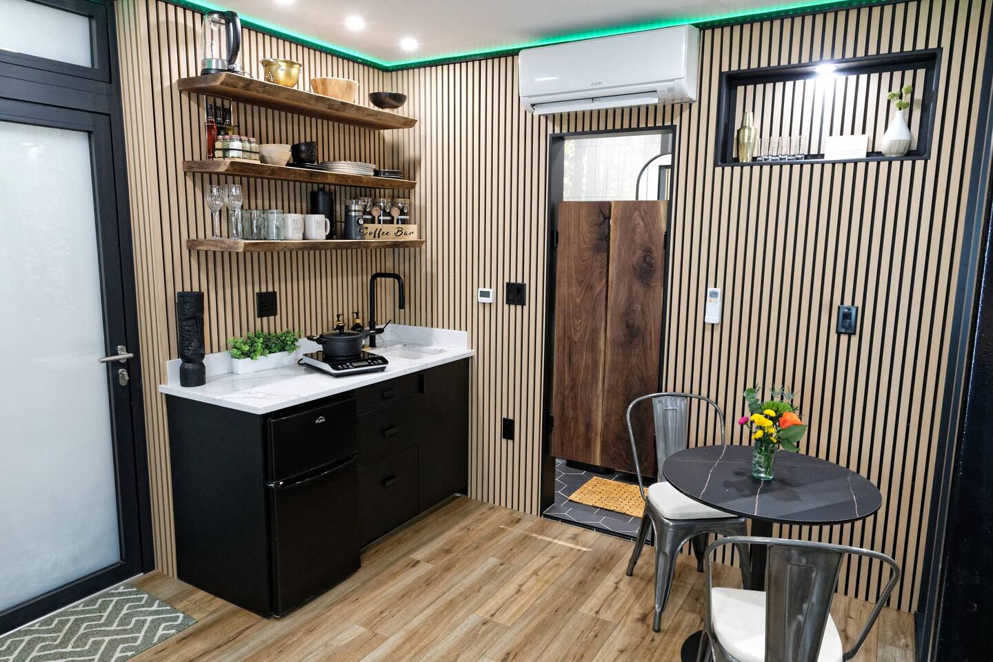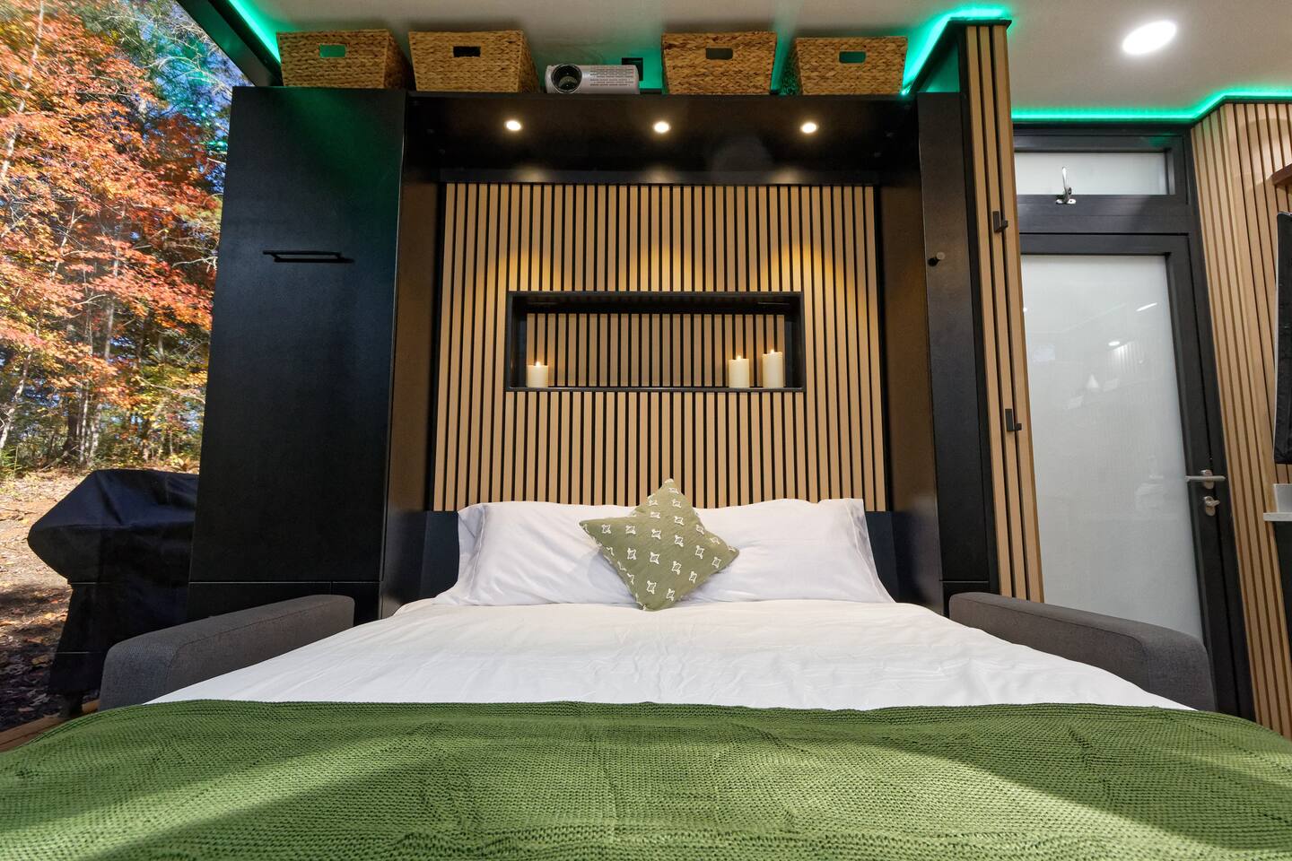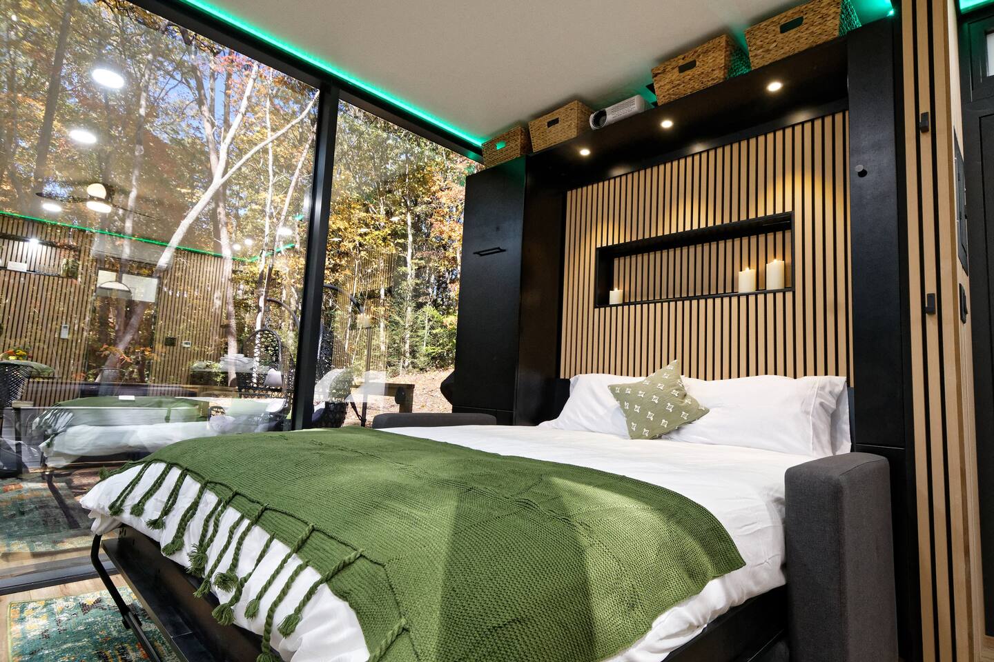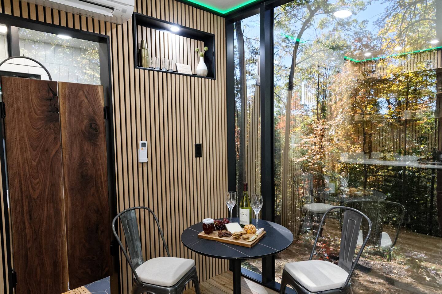 Add this listing to your wishlist now by clicking the ❤️ in the upper right hand corner. The mirror house is organized as a studio space with the living room doubling as a bedroom and uses a creative Murphy wall bed to maximize living space. This makes the space feel far bigger, as do the windows on nearly all sides of you. However the bathroom itself is small, leaving minimal storage space for your things. At 200 square ft. inside, the interior size feels like a luxury hotel room in the woods. This size space is not for everyone - If you are expecting a large accommodation, you'll need to look elsewhere. The mirrors are coated with a special patented anti-bird strike technology to prevent birds from not seeing the structure. There are two places to stay at Glassy Stays, the mirror house you are staying in and a 30-foot geodesic dome (the largest transparent dome in North America). The dome is approximately 300 feet from the mirror house. There are no privacy issues as the glass portions of each face away from another. There is neighbor in the holler who will occasionally practice target shooting on his property. The sound from this can be heard from outside the mirror house. He typically alerts us ahead of time and we will let you know about this whenever possible.