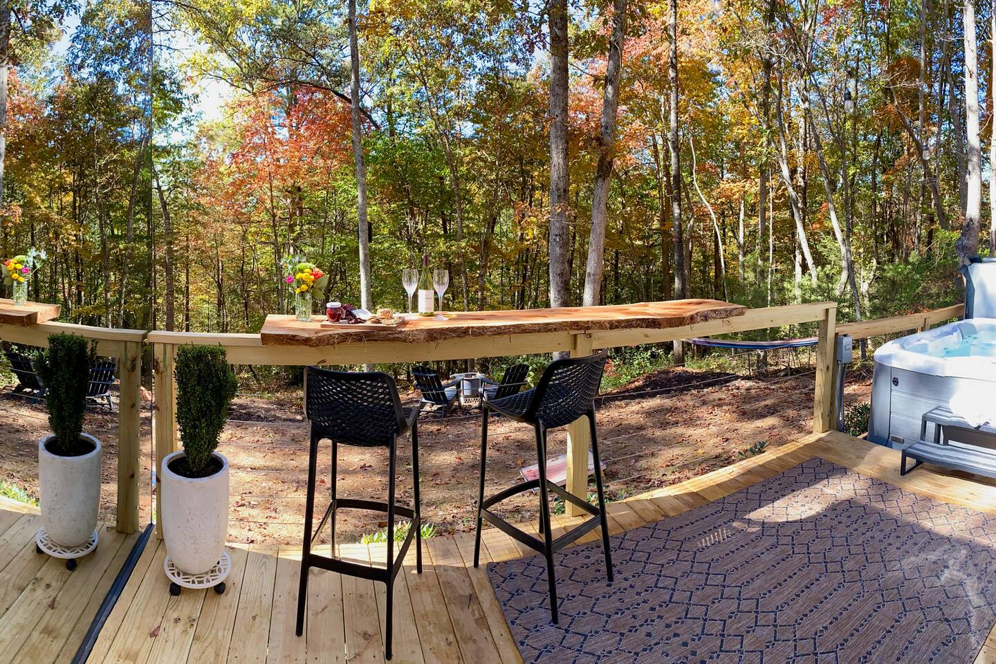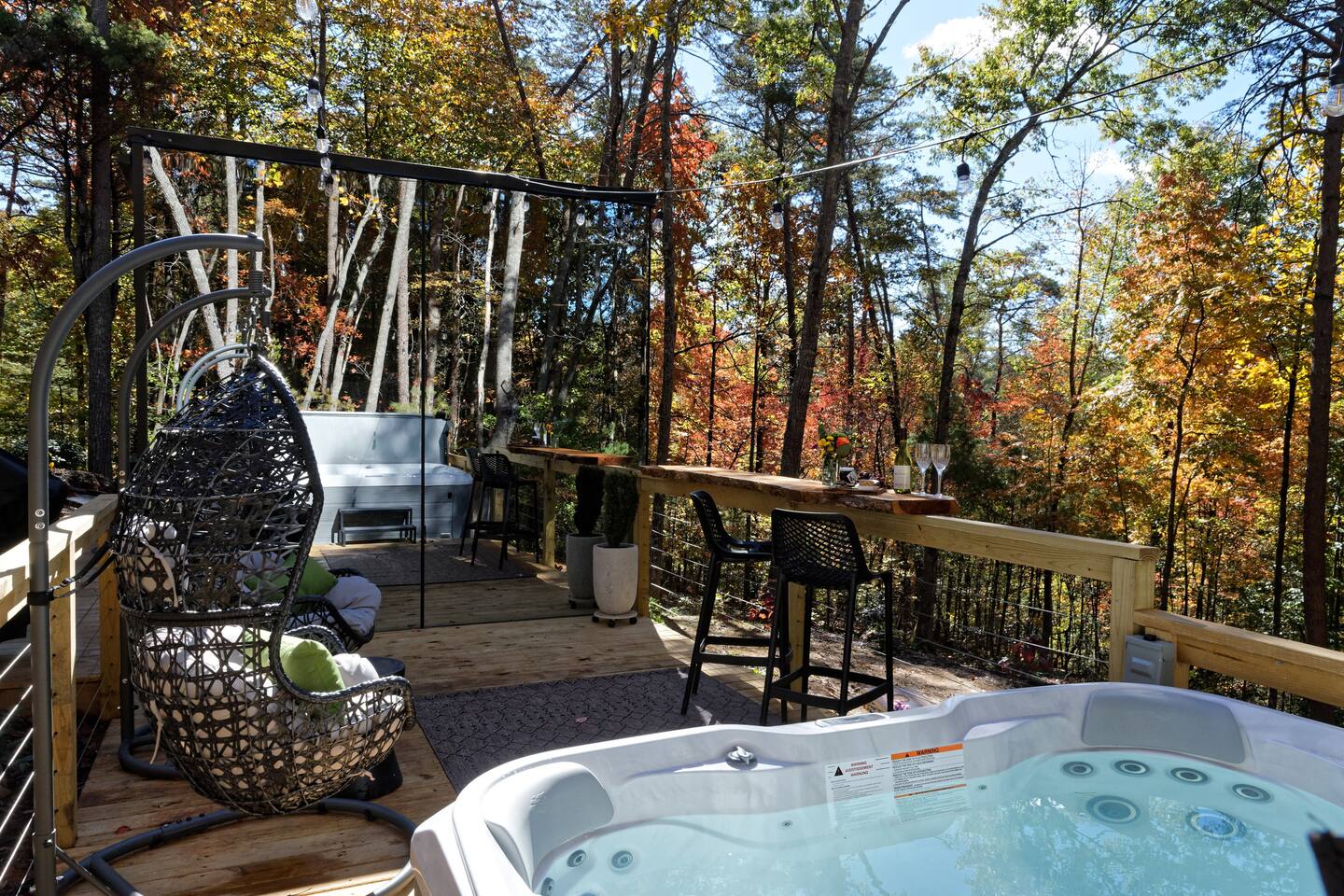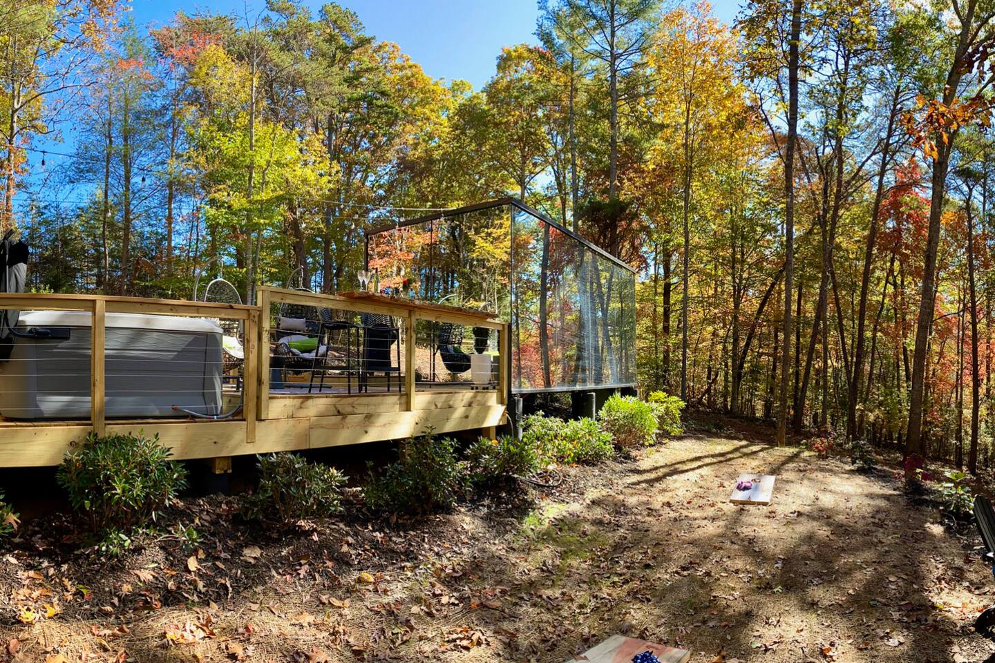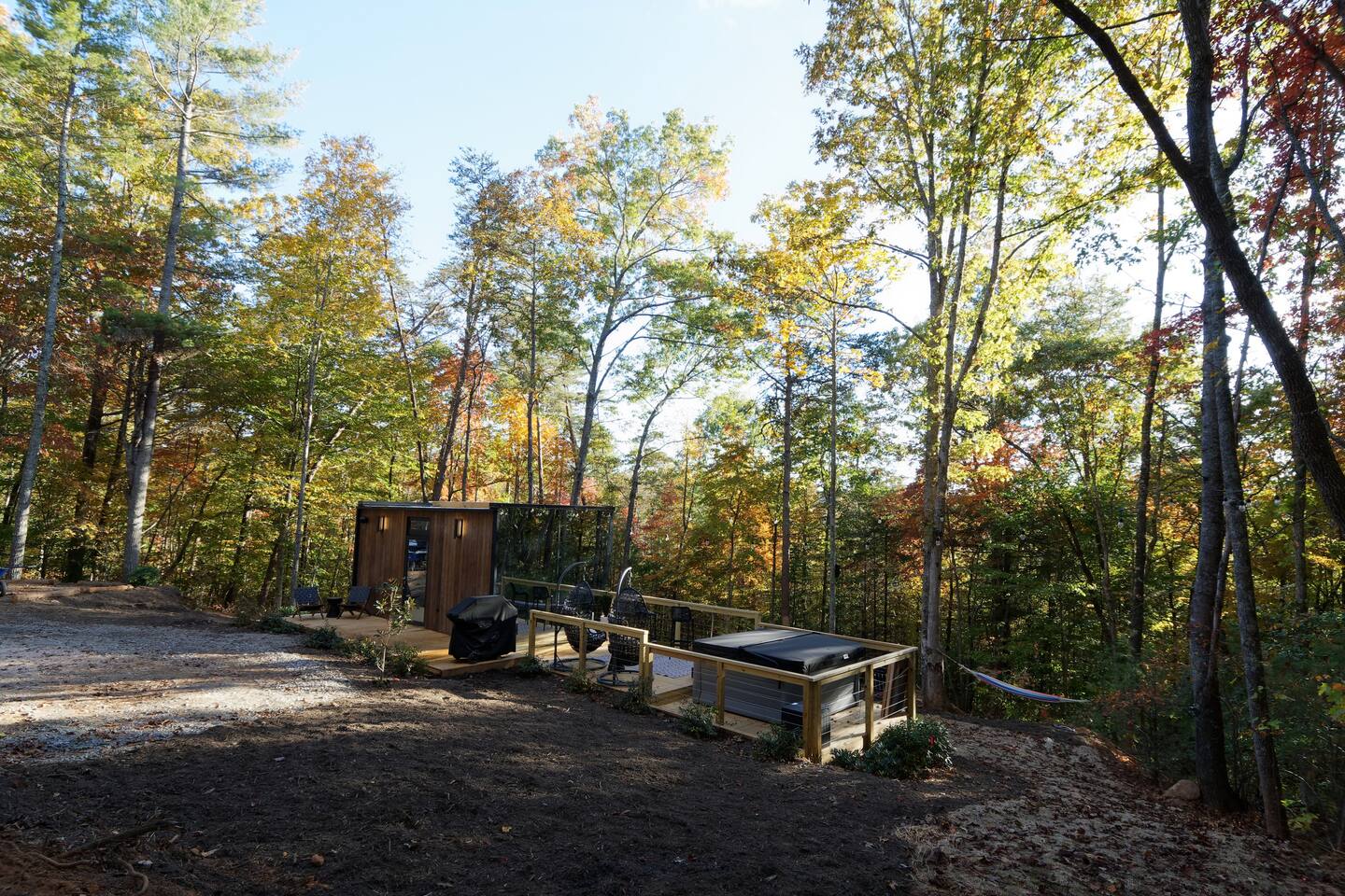 Discover pristine wilderness at Glassy Stays, Asheville's exclusive mirror house. Unwind from life's stressors and rejuvenate your mind and body as you forest bathe through one-way glass walls. Relax in your private hot tub or take a picnic on a hidden trail to a private meadow and a 200-year-old chimney. Entirely off-grid and sustainable, this sought-after haven for singles and couples alike brings modern luxury into nature. Book your escape now—this unique stay is unparalleled.